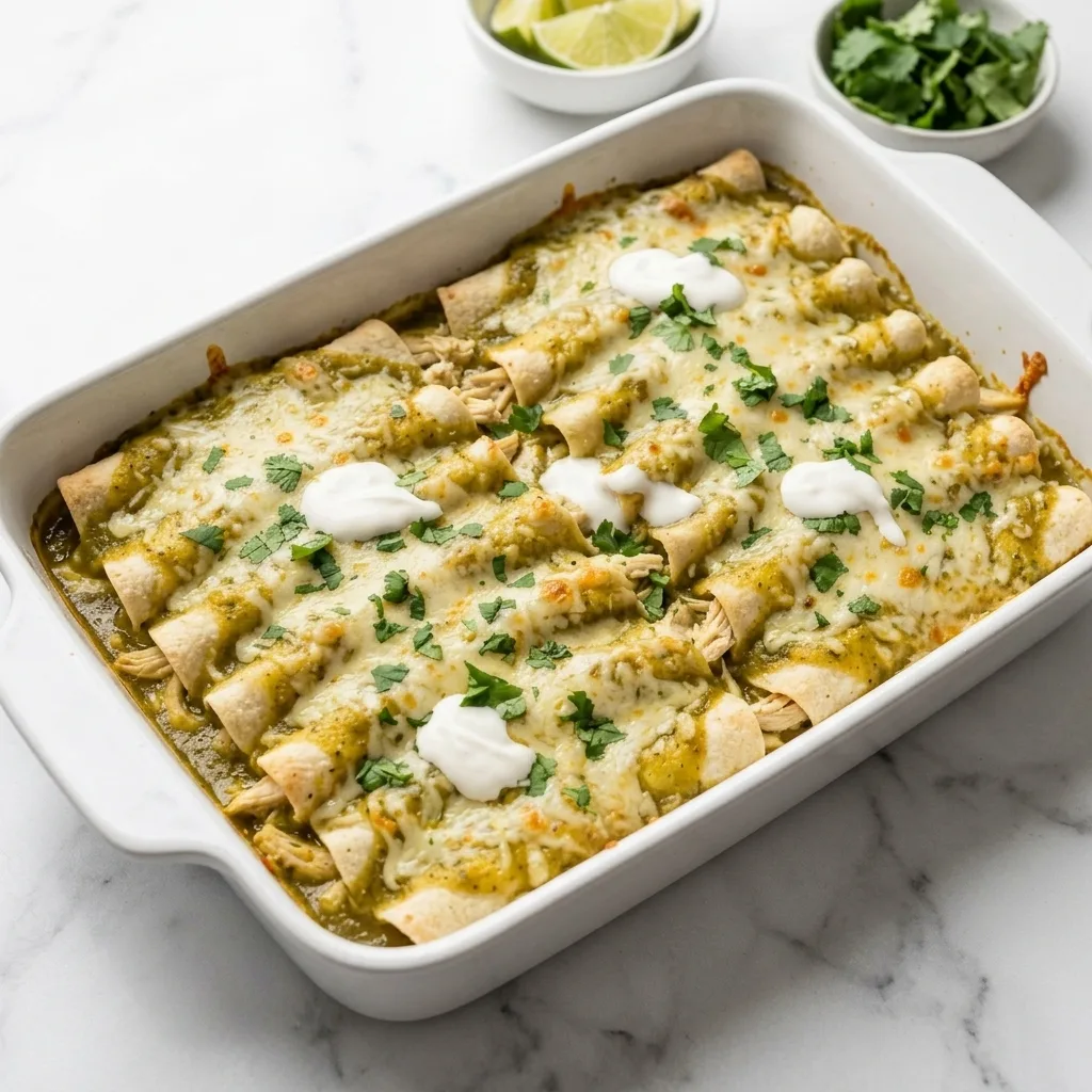 - Spread 4 ounces salsa verde in the bottom of a 9x13-inch baking dish.